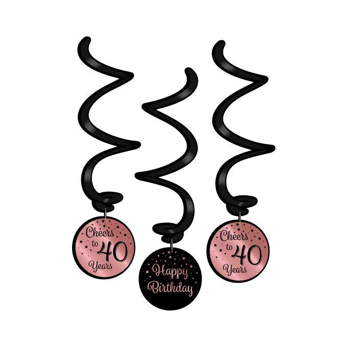 3 Swirl decorations rose/black 40jaar