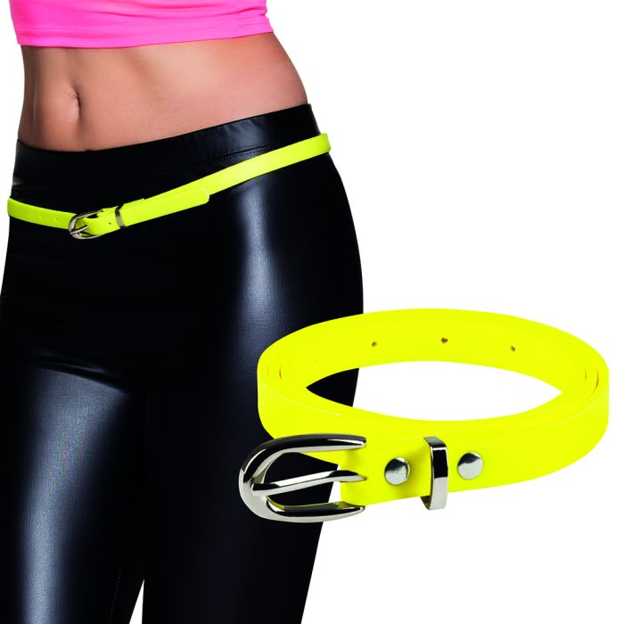 NEON Party met de 80's riem neon geel! Deze luxe riem in felgeel voegt een speelse flair toe aan jouw outfit en maakt je helemaal klaar voor de dansvloer. Perfect voor disco's en feesten, deze riem laat je stralen als nooit tevoren.