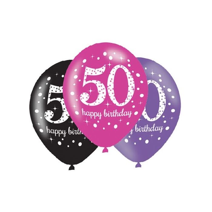 Ballonnen sparkling 50 pink 28cm 6stuks