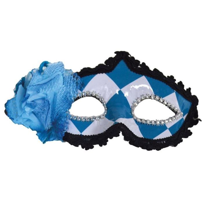 Blauw-wit-geblokte oogmasker met bloem
