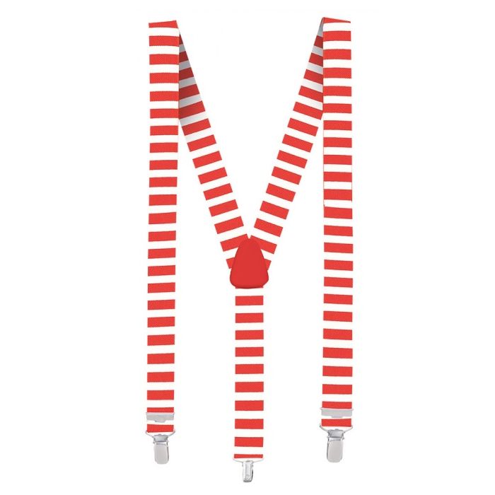 Deze rood-witte bretels maken je carnavals-outfit helemaal compleet! De bretels zijn geschikt voor volwassenen en zijn niet verstelbaar. Materiaal van de rood-witte bretels: 96% polyester, 2% elastane, 2% polyurethane.