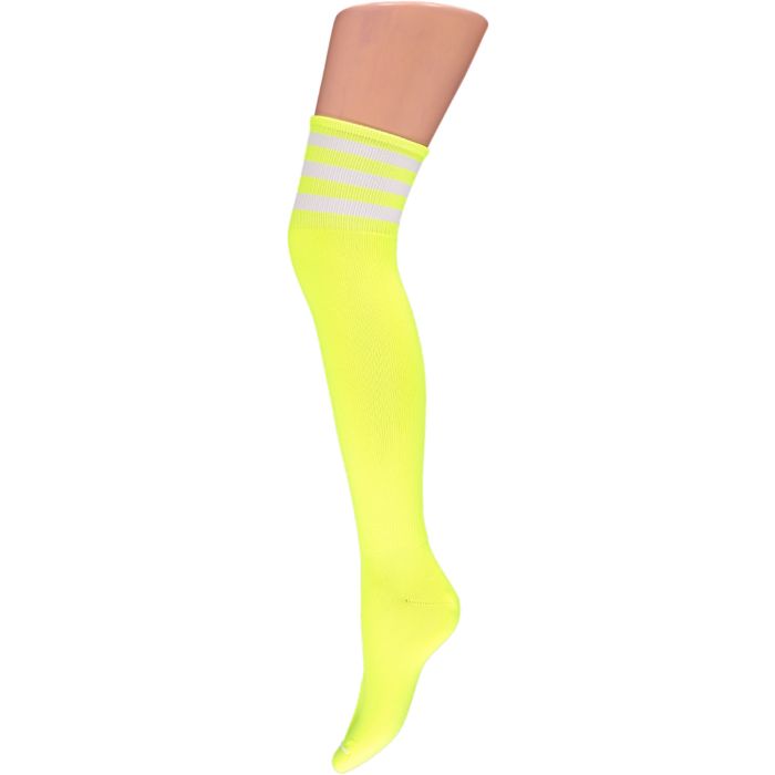 Carnavalssokken voor de carnaval of foute party in het model Cheerleader. De kleur is Fluor geel en lekker hip en passend bij elk Fluor carnavalsoutfit of party outfit! Deze gele Fluor kousen vallen tot onder de knie, maar je kan altijd zelf bepalen hoe hoog je ze optrekt.