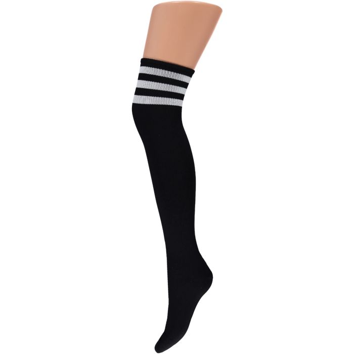 Carnavals kniekousen Cheerleader zwart-wit (per paar). Geef jouw feestoutfit een extra speelse finishing touch met deze goed te combineren lange feest cheerleader kniekousen met omslag. Door de ribstructuur sluiten deze sokken mooi aan om het been, dragen ze comfortabel en blijven ze goed zitten.Het maakt jouw carnavalskostuum of party outfit helemaal af! Kies er ook voor om een leuke netpanty onder deze kniekousen te dragen. Je zult enorm tevreden zijn met het resultaat en klaar voor de Party!