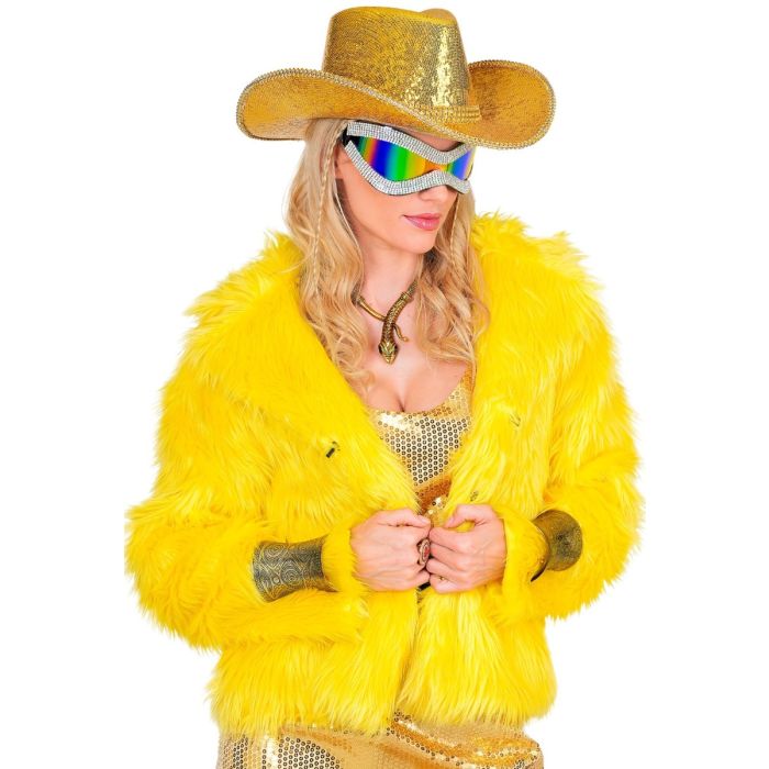 Maak je klaar om te stralen met onze dames bontjas geel - kort model! Dit kort bontjasje is perfect voor Carnaval en festivals. Het pluche materiaal zorgt voor een heerlijke, warme omhelzing terwijl je de dansvloer onveilig maakt. Met de bijpassende pluche beenwarmers ben je helemaal in stijl!