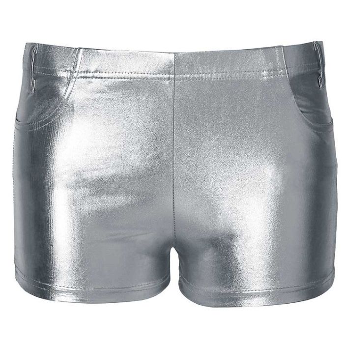 Deze Zilveren hotpants is een nauw aansluitende korte broek met kontzakken die gedragen kan worden als broekje of als onderkleding onder bijvoorbeeld een petticoat of een kort jurkje. De broek heeft veel stretch en is een echtemust havevoor ieder feestje! De niet knellende band zorgt voor een optimaal comfort.Het broekje is voorzien van 2 steekzakken, en 2 kontzakken.
