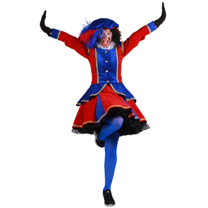 Dames pieten pakje 3dlg. Madrid rood-blauw, Dames pietenkostuum in polyester fluweel, jas met een schootje, jurkje (knielengte) in een hemdmodel , baret, dmv van een satijnen striklint op het rugpand kun je de taille bijzonder mooi passend maken. Mocht je in de gelegenheid zijn dan is een bezoek aan onze Feestwinkel in Roosendaal aan te raden. Wij hebben van 1 september t/m 5 december een speciale Sinterklaas afdeling waar je in alle rust je Sinterkaas artikelen kan uitzoeken. Je bent meer dan welkom!