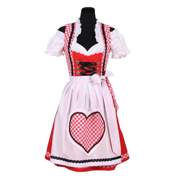DirndLet op! Bestel 2 maten groter dan je hebt, deze dirndl valt klein uit!Dit Dirndl jurkje bestaat uit de jurk en de schort met hart opdruk. Let op! De witte Tiroler blouse zit niet bij dit Tiroler jurkje inbegrepen, maar is los te bestellen in onze webshop!