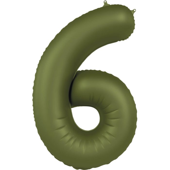 Folieballon cijfer 6 olijf groen 86cm (excl Helium)