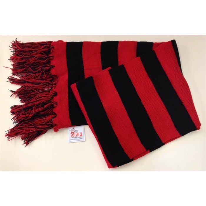Met deze heerlijk warme gebreide sjaal met franjes in de kleur rood-zwart kan jouw feest niet meer stuk. Het breisel is lekker warm en comfortabel om te dragen.