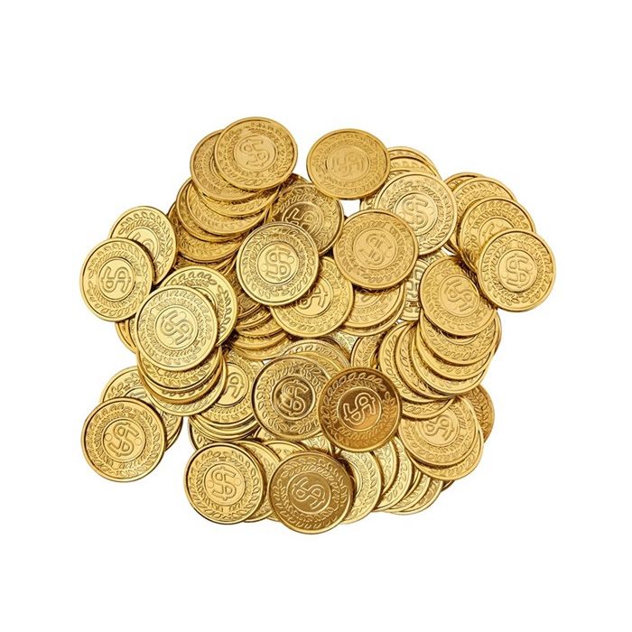 Gouden dollar munten in overvloed. In dit zakje zitten 100 nep dollar munten. Leuk om te gebruiken voor een maffia of western feest. Ook leuk om deze dollar munten te gebruiken op een poker avond. De gouden dollar munten zijn van plastic.