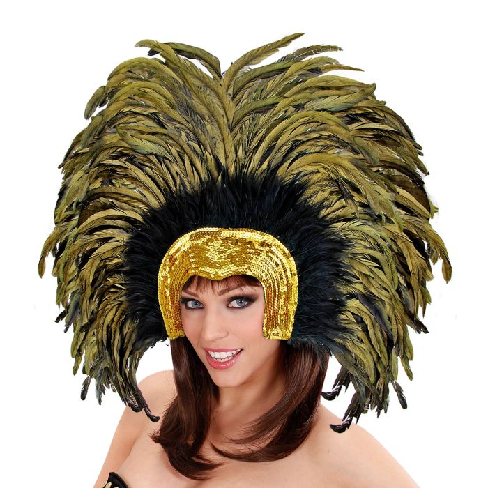 Maak je klaar voor een onvergetelijk Carnaval met de Gouden Braziliaanse veren hoofdtooi! Deze prachtige hoofdtooi is een echte blikvanger en voegt een sprankje magie toe aan je outfit. De mooie veren zorgen voor een feestelijke uitstraling die je niet wilt missen.