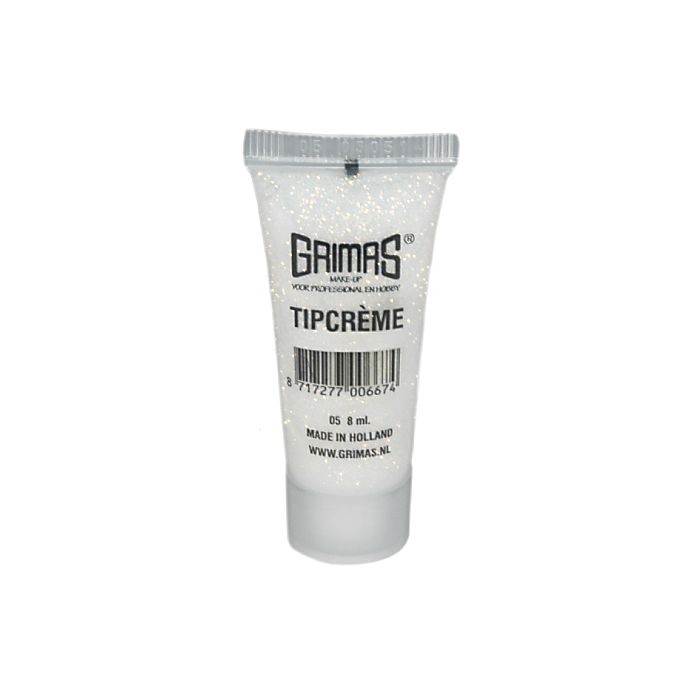 Grimas Tipcreme Parelmoer Rood nr. 5 is direct te gebruiken op de huid, of over schmink heen. De Tipcreme droogt op, waardoor de glitters blijven zitten op de huid. De Tipcreme mag rondom de ogen gebruikt worden. De creme is geschikt voor kinderen. Verwijderen met lauwwarm water en indien nodig zeep. Er zijn meerdere kleuren Tipcreme.