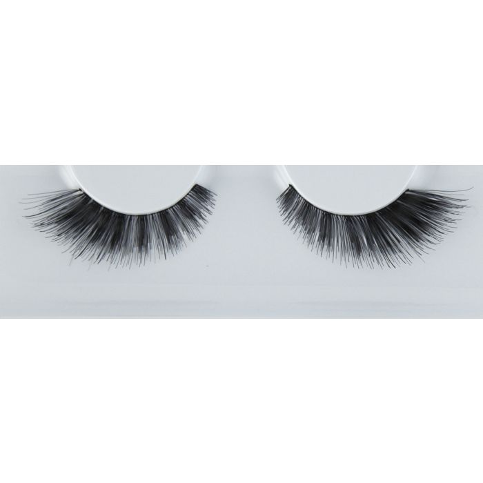 Extra informatie Grimas nepwimpers aanbrengen: Neem de nepwimper voorzichtig uit het doosje. Met de plakrand waarmee het in het doosje vastzit, plakt u de nepwimper met een pincet of de vingers op de bovenste wimperrand. Werk van binnen naar buiten, waarbij u iets vanaf de binnenste ooghoek begint. Nu weet je of de wimper goed zit en kun je de nepwimper weer afnemen. Wat te lang is, knipt je af aan de buitenkant. Doe wat Grimas wimperlijm op de hand en breng met behulp van de punt van een spatel of met de achterkant van een penseel wat wimperlijm aan langs de rand van de nepwimper. Breng de nepwimper van buiten naar binnen op met behulp van een pincet. Voorzichtig aandrukken met een wattenstaafje. Werk vlot, want de lijm droogt snel. Na enige minuten zal de witte wimperlijm vanzelf transparant worden. Let op! De Grimas nepwimpers worden geleverd exclusief wimperlijm!