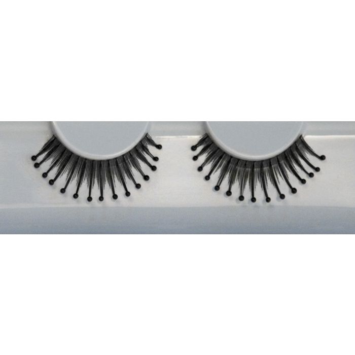 Extra informatie Grimas nepwimpers aanbrengen: Neem de nepwimper voorzichtig uit het doosje. Met de plakrand waarmee het in het doosje vastzit, plakt u de nepwimper met een pincet of de vingers op de bovenste wimperrand. Werk van binnen naar buiten, waarbij u iets vanaf de binnenste ooghoek begint. Nu weet je of de wimper goed zit en kun je de nepwimper weer afnemen. Wat te lang is, knipt je af aan de buitenkant. Doe wat Grimas wimperlijm op de hand en breng met behulp van de punt van een spatel of met de achterkant van een penseel wat wimperlijm aan langs de rand van de nepwimper. Breng de nepwimper van buiten naar binnen op met behulp van een pincet. Voorzichtig aandrukken met een wattenstaafje. Werk vlot, want de lijm droogt snel. Na enige minuten zal de witte wimperlijm vanzelf transparant worden. Let op! De Grimas nepwimpers worden geleverd exclusief wimperlijm!