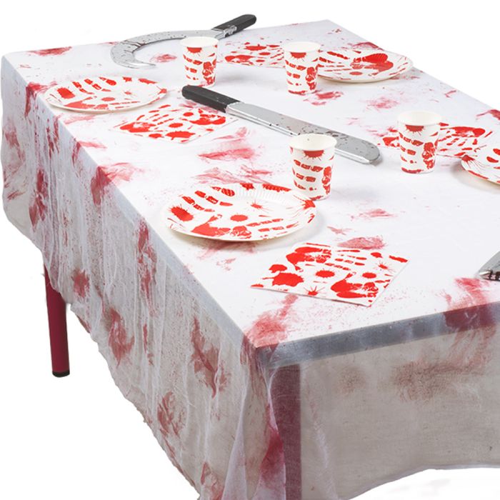 Een Bloederig Tafellaken is de basis van een Halloween Diner. De Halloween Tafellaken heeft een afmeting van: 15x18cm.Bestel ook De Bloederige Halloween Servetten, bordjes, bekers en kandelaars voor een echte Halloween uitstraling!