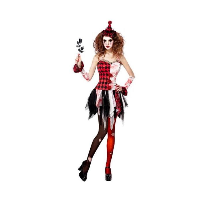 Dit Halloween jurkje: Evil Harlequin bestaat uit 4 delen: De jurk, het hoedje en 2 handschoen/armen