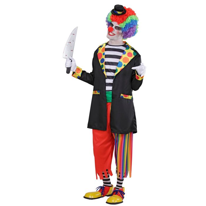 Maak je klaar voor een angstaanjagend Halloween met het Halloween pak Evil clown 6dlg. Dit kostuum bestaat uit 6 delen: een broek, shirt, jas, twee zwart-witte sokken en een hoedje. Perfect voor diegenen die de show willen stelen als een killer clown. Het zal zeker een lach en een schreeuw oproepen!