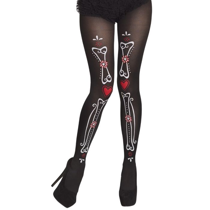 Deze zwarte panty van 4 denier in Day of the Dead stijl is helemaal te gek als extra accessoire bij jouw Halloween outfit. Perfect voor onder een leuke Halloween rok of Halloween jurk.