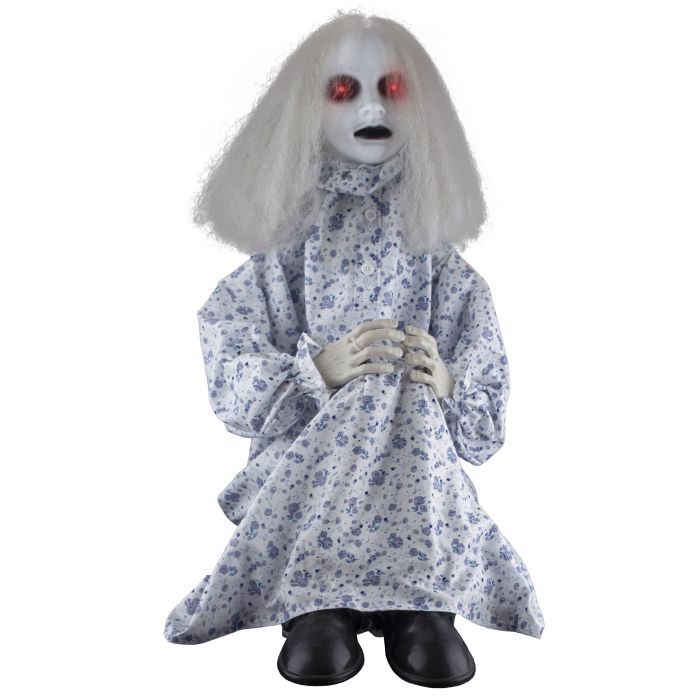 Deze pop ziet er misschien schattig uit. Maar je vergist je deze pop verbergt iets duisters. Laat iedereen schrikken met deze toffe Halloween pop, deze Halloween decoratie geeft een leuke spannende beleving aan jouw Halloweentocht/ feestjeDeze Halloween sitting girl werkt op sensor, zodra er geluid klinkt zal de pop angstaanjagend gaan schreeuwen en zal ze beginnen te bewegen.Deze Halloween decoratie is een van de andere enge Halloween poppen in onze winkel van SEP.Kom onze Halloween winkel bekijken of bestel de Halloween pop online in onze webshop.Dit artikel werkt op batterijen.Let op! wij leveren deze decoratie exclusief batterijen
