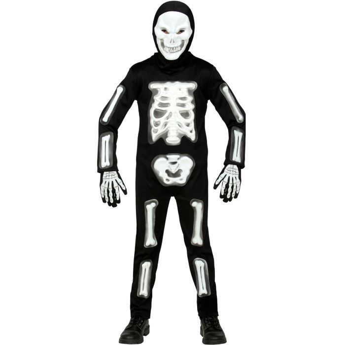 Dit 3D skeletten pak bestaat uit 4 delen: De overall met 3D skeletten print opdruk, het masker met doodshoofd en 2 skeletten handschoenen.