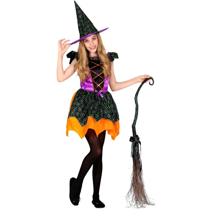 Dit fleurig heksen jurkje is minder eng dan de andere heksen jurken. Het bestaat uit 2 delen: De heksen jurk en de heksen hoed. Alle andere heksen accessoires, zoals heksen neuzen, heksen bezems, heksen pruiken zijn los te bestelen in onze webshop, of te koop in onze winkel.