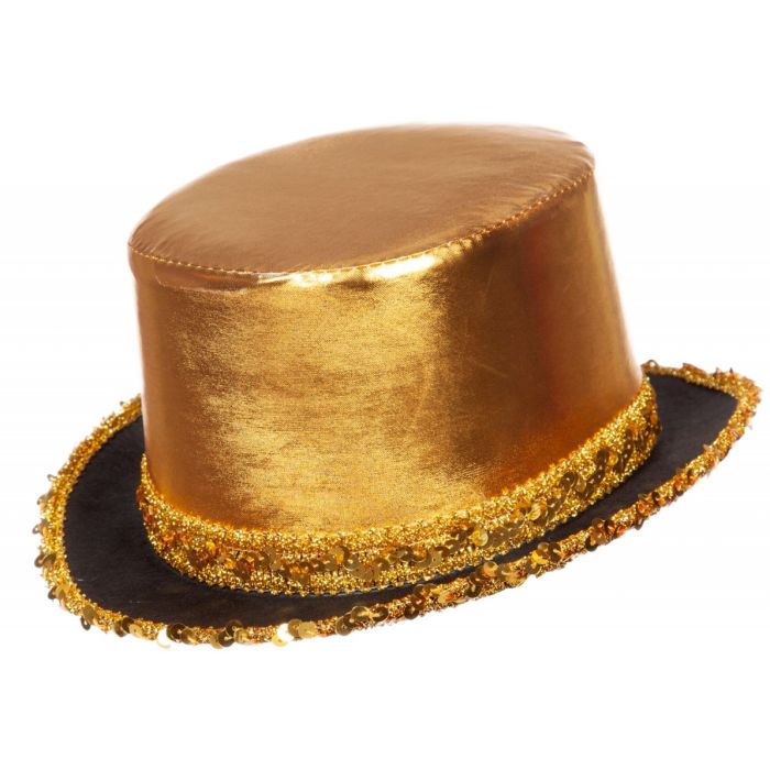 Hoge hoed goud met pailletten band (unisex)