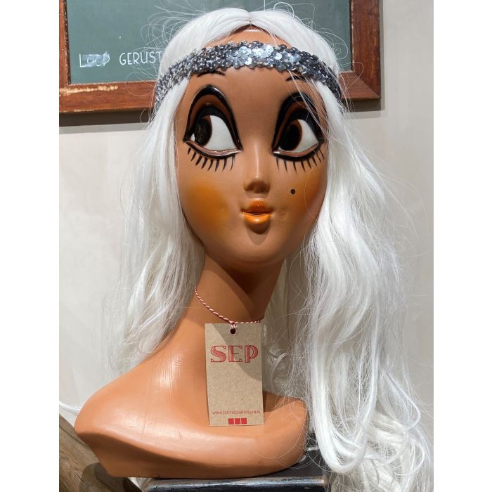 Een 1maat elastische hoofdband met Zilver kleur pailletten. Deze hoofdband is een leuke toevoeging op jouw Disco, Carnavals of ander (fout)thema outfit.