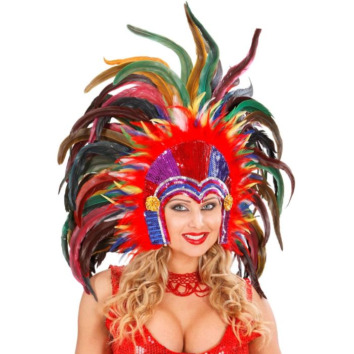 Maak je Carnaval onvergetelijk met de Hoofdtooi Tropicana multi kleur! Deze Braziliaanse hoofdtooi is een echte blikvanger dankzij de prachtige, kleurrijke veren. Perfect voor een feestelijke uitstraling en een geweldige aanvulling op je kostuum.