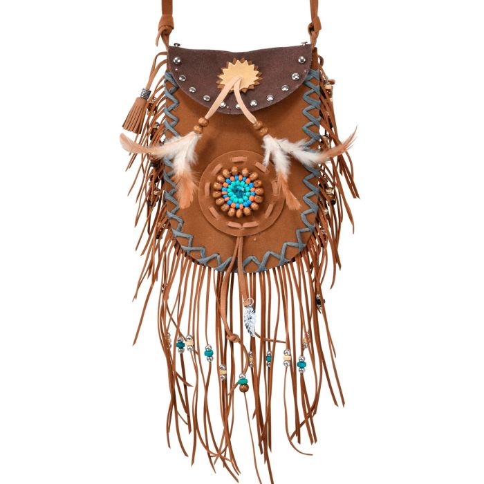Indianen tasje met kralen en veren