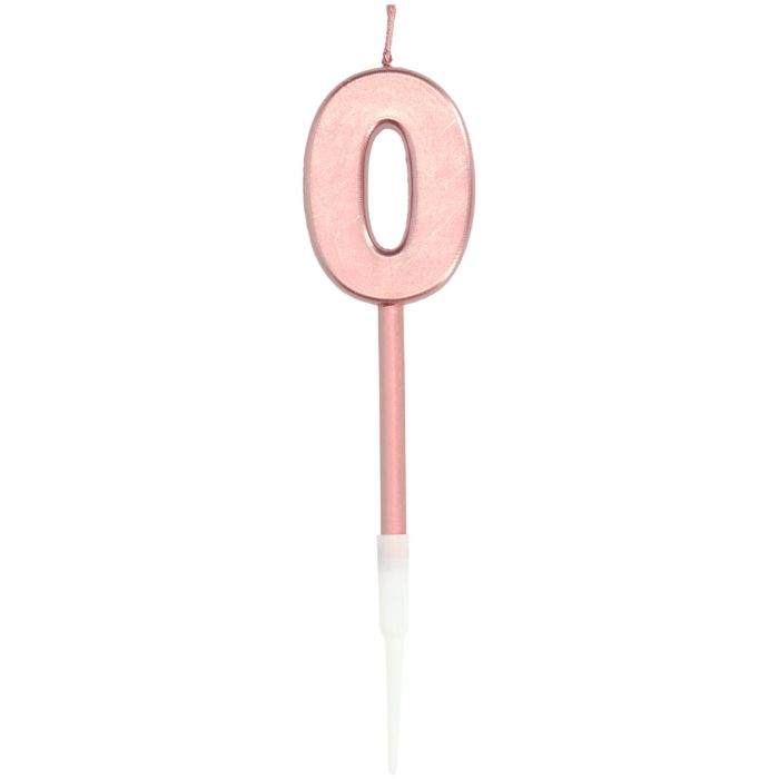 Kaars Cijfer 0 Rosegoud Metallic 14cm.