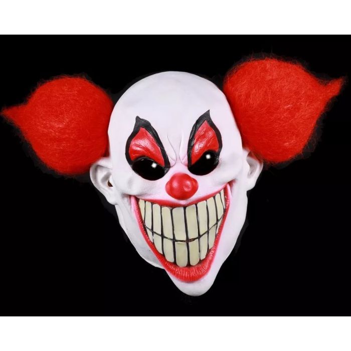 Killer Clown Masker ''Friendly Clown"Latex clowns masker met een rode haardos gaat helemaal over het hoofd, maat is one size voor volwassenen.