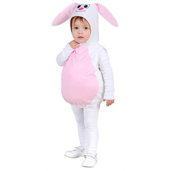 Dit baby carnavalskostuum: konijn pakje 2dlg. bestaat uit het rompertje met dikke buik en de hoofddeksel. Geschikt voor kinderen van 1 t/m 3 jaar.
