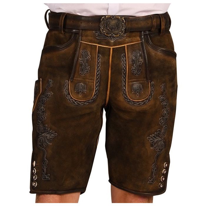 Maak je klaar voor het Oktoberfest met de stijlvolle Lederhose "Fabian" in donker bruin! Deze originele outfit is vervaardigd uit echt leder, wat zorgt voor een perfecte pasvorm en een luxe uitstraling. Of je nu dansend door de bierhallen beweegt of geniet van een gezellig samenzijn, met deze lederhose ben je altijd goed gekleed.