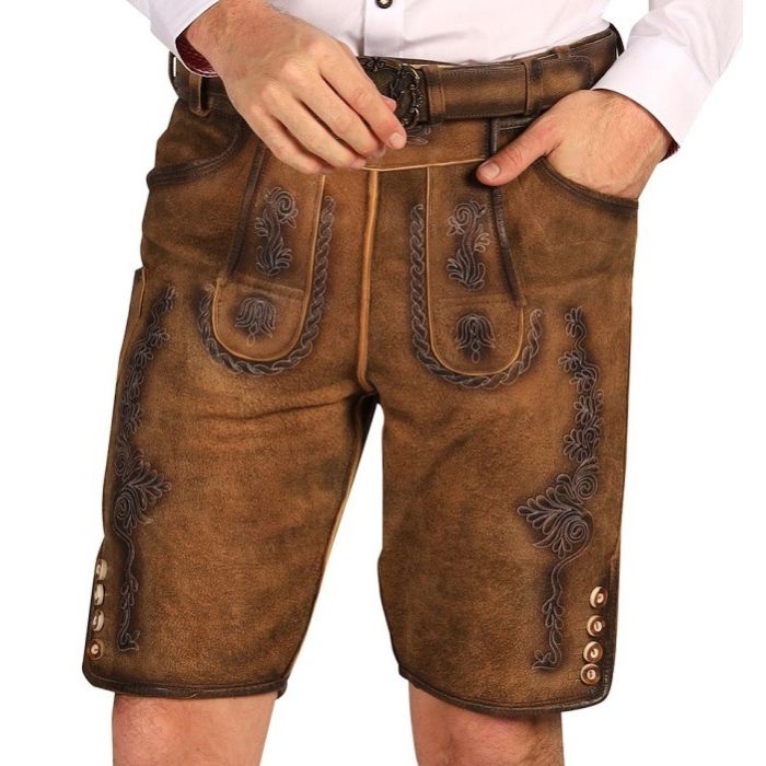 Maak je klaar voor het Oktoberfest met de stijlvolle Lederhose "Fabian" in licht bruin! Deze originele, handgemaakte broek van echt leder biedt niet alleen een perfecte pasvorm, maar ook een tijdloze uitstraling. Combineer hem met een bijpassende Tiroler blouse en je bent klaar om te feesten!