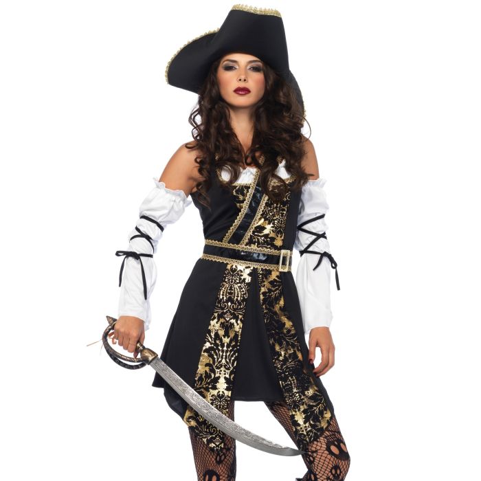 Maak je klaar voor een onvergetelijk Carnaval met het Leg Avenue Kostuum Black Sea Buccaneer 4dlg. Dit sexy piratenkostuum is niet alleen een complete outfit, maar biedt ook een sexy twist die je zeker in de schijnwerpers zet. De zwarte jurk met gouden details en de bijpassende hoed maken je look helemaal af!