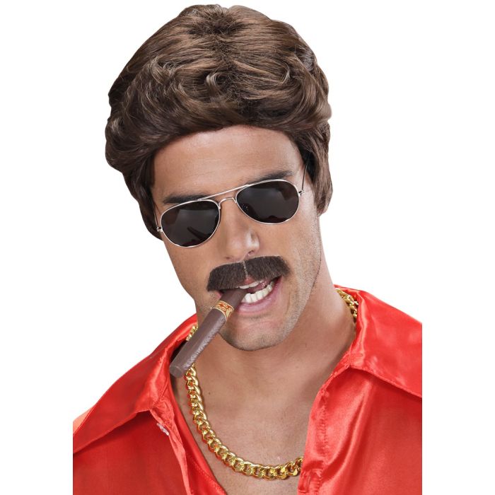 Luxe heren pruik bruin met snor