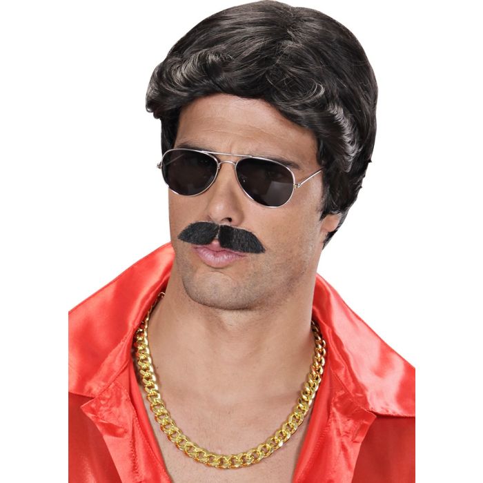 Luxe heren pruik zwart met snor