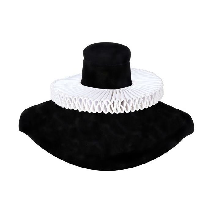 Molensteenkraag Rembrandt, deze prachtige kraag heeft zijn oorsprong in de middeleeuwen liggen en is het beste/mooiste wat op dit gebied momenteel te koop is een "must have" voor elke liefhebber. De Molensteen kraag is erg mooi afgewerkt. en zeer geschikt voor musea en professionele musicals. Aan de molensteen kraag zit klittenband om de kraag aan en uit te doen.