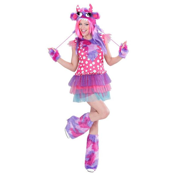 Een erg leuk monster pakje. Het monster pakje bestaat uit de jurk met tule, twee beenwarmers, twee polsbandjes en een erg leuk monster mutsje.