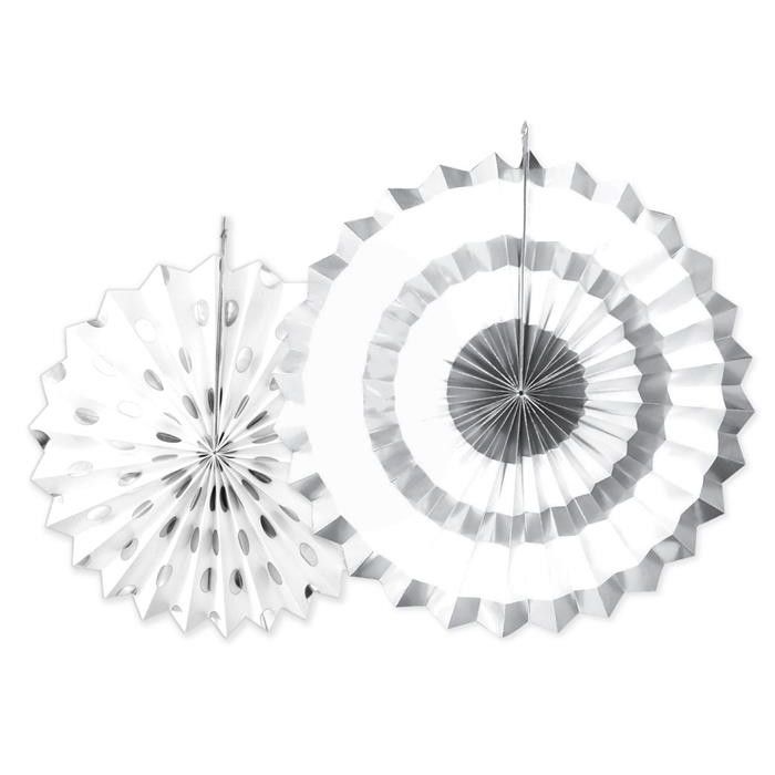 Papieren Waaiers Sparkling Silver 2stAantal: 2 stuks Afmeting: 1x 40 cm en 1x 30 cm