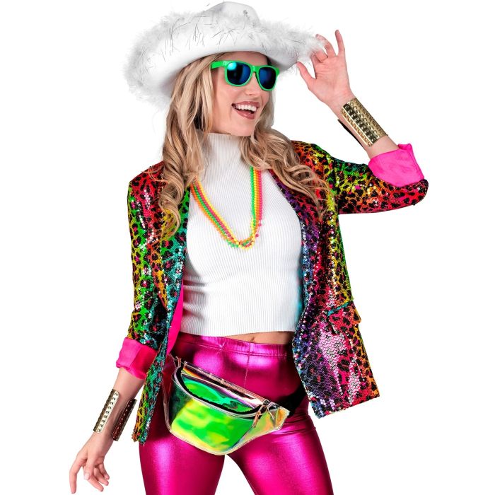 Maak je klaar voor de Foute Party met ons schitterende Dames colbert in een opvallende animal print! Dit colbert is gemaakt van Pailletten stof en voegt een speelse flair toe aan elke outfit. Perfect voor carnaval of een feestje met vrienden, het is een echte blikvanger die je niet wilt missen.