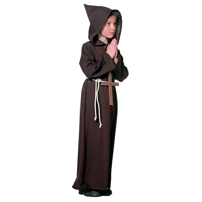 Pater kind 2dlg.Dit pater kostuum voor kinderen bestaat uit een bruine pij en een los koord.