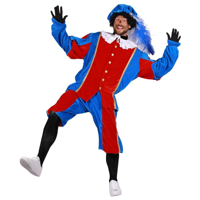 Pieten pak populair in de kleur rood-blauw is een mooi Pieten kostuum in een gebreide polyester fluwelen kwaliteit de prijs/ kwaliteit verhouding van dit kostuum is geweldig. Het Pieten kostuum bestaat uit 3 delen: De broek, shirt en baret. Alle losse Pieten accessoires zoals veren, maillots, handschoenen etc. zijn te bestellen in onze webshop.Mocht je in de gelegenheid zijn dan is een bezoek aan onze Feestwinkel in Roosendaal aan te raden.Wij hebben van 1 september t/m 5 december een speciale Sinterklaas afdeling waar je in alle rust je Sinterkaas artikelen kan uitzoeken. Je bent meer dan welkom!