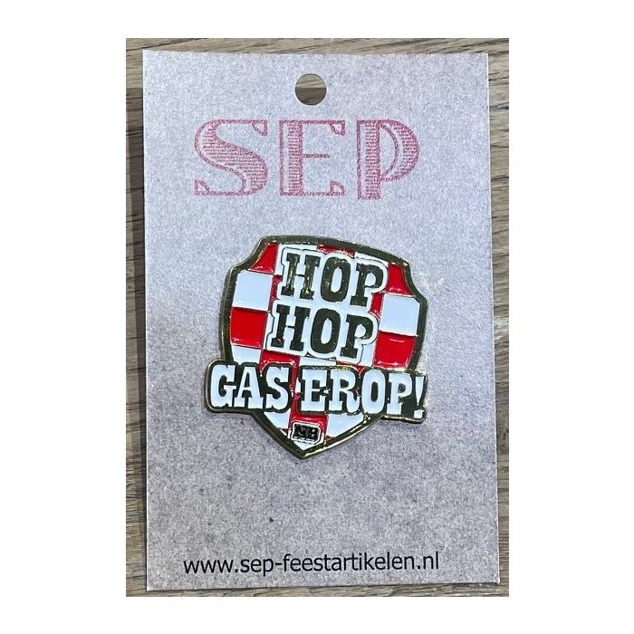 Pinneke HOP HOP GAS EROP (3,5 X 3cm.)