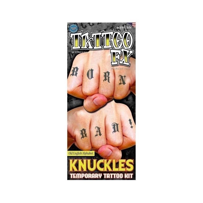 Met de Tinsley Plak Tattoo FX Knuckles-Alphabet geef je jouw look een unieke touch. Deze tijdelijke tattoo is perfect voor Halloween, carnaval of elk ander themafeest. Het is een eenvoudige manier om je outfit op te fleuren met realistische special effects.