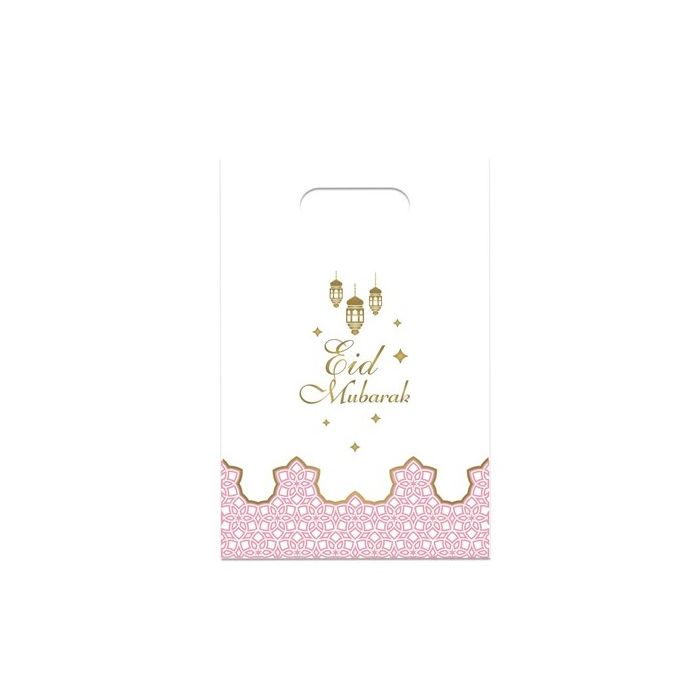 Plastic Partybags Eid Mubarak roze 6stuks