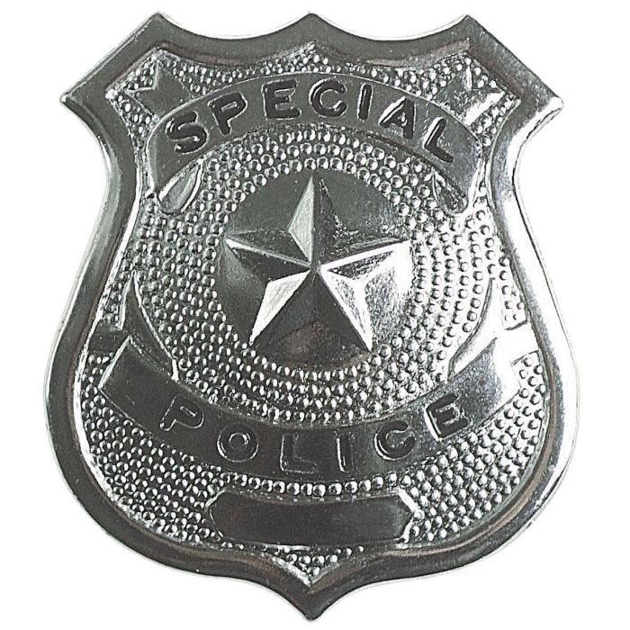 De politie badge is gemaakt van hard metaal en je kunt de badge vast zetten met een veiligheidsspeld.