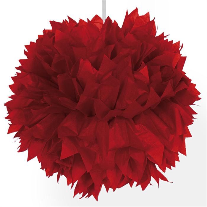 Pompon papier decoratie rood 3cm.Nieuw in ons assortiment! Deze leuke papier decoratie moet je wel zelf uitvouwen. Aan de pompoen zit een lintje om de decoratie op te hangen.Een leuke nieuwe manier om een ruimte leuk aan te kleden!