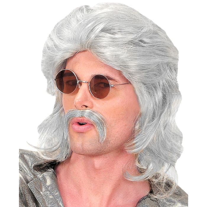 Pruik 70's man met snor grijs