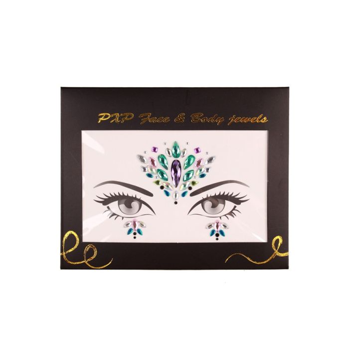 PXP face en body jewels model HHerbruikbare gezicht/body stenen van PXP. Deze leuke set Jewels heeft een leuke afwisseling van diverse soorten kleuren en vormen, en maken jouw Party outfit compleet. Doordat de stenen facet zijn geslepen, krijg je nog meer glitter effect.Gebruik Grimas mastix extra om zeker te zijn dat jouw stenen blijven zitten tijdens ieder feest. De stenen kunnen met de mastix ook over schmink heen gedragen worden.